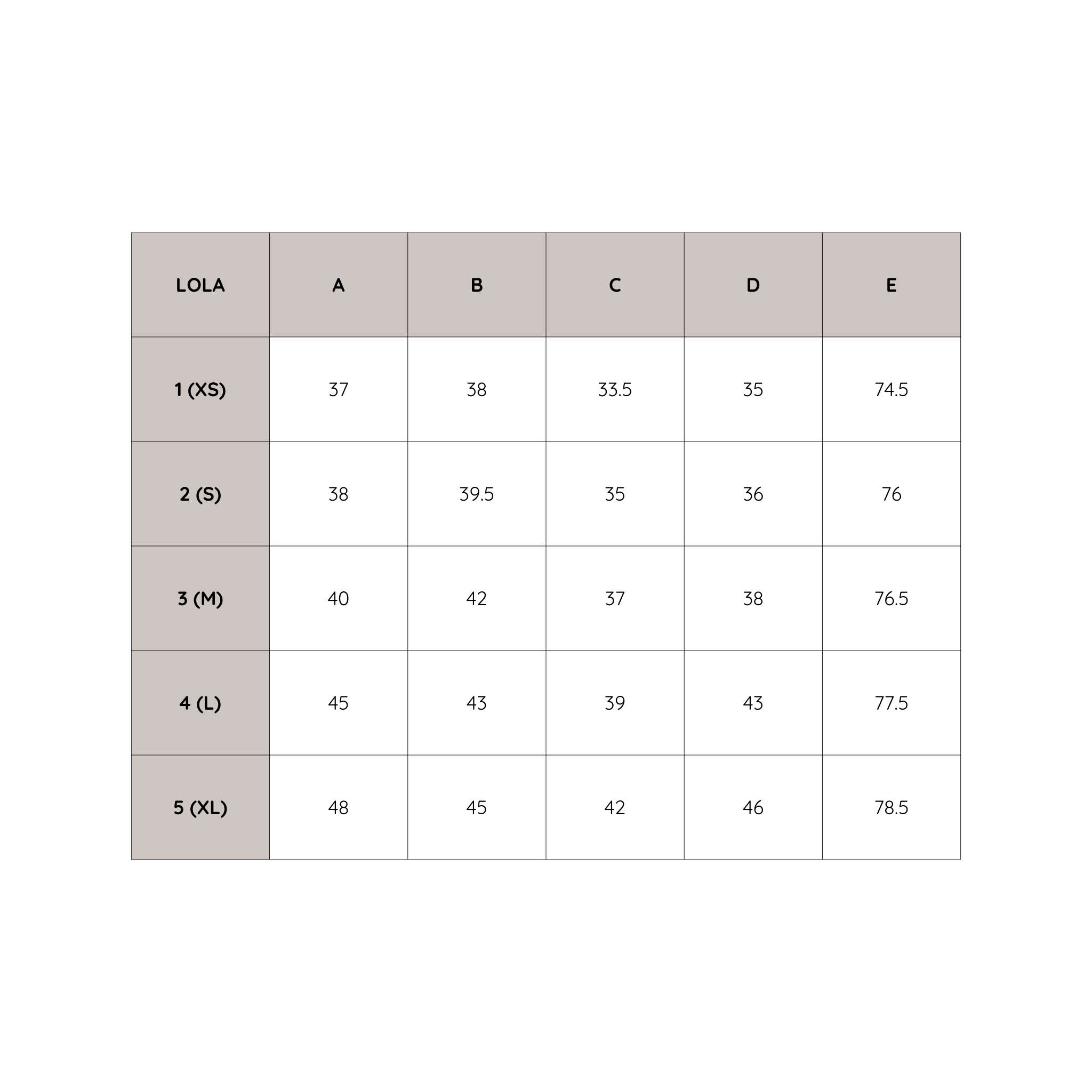 * Maße in cm. Gemessen am flach liegenden Kleidungsstück. Es handelt sich hier um handgefertigtes Design, kleine Abweichungen sind daher möglich.