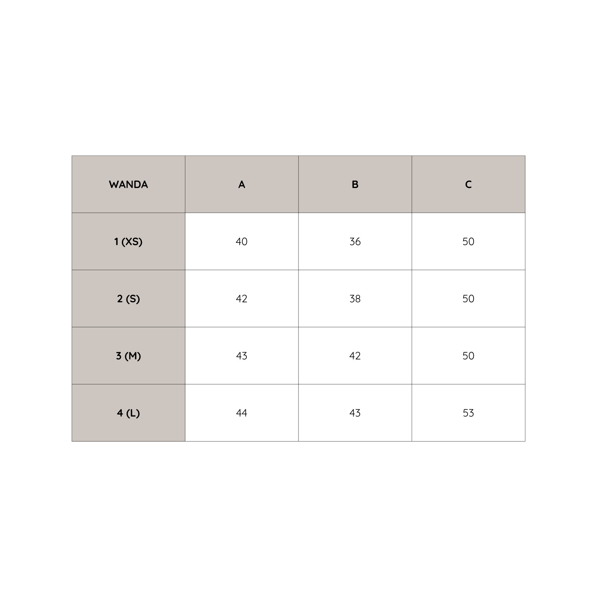 Size Size chart 1 (XS)
