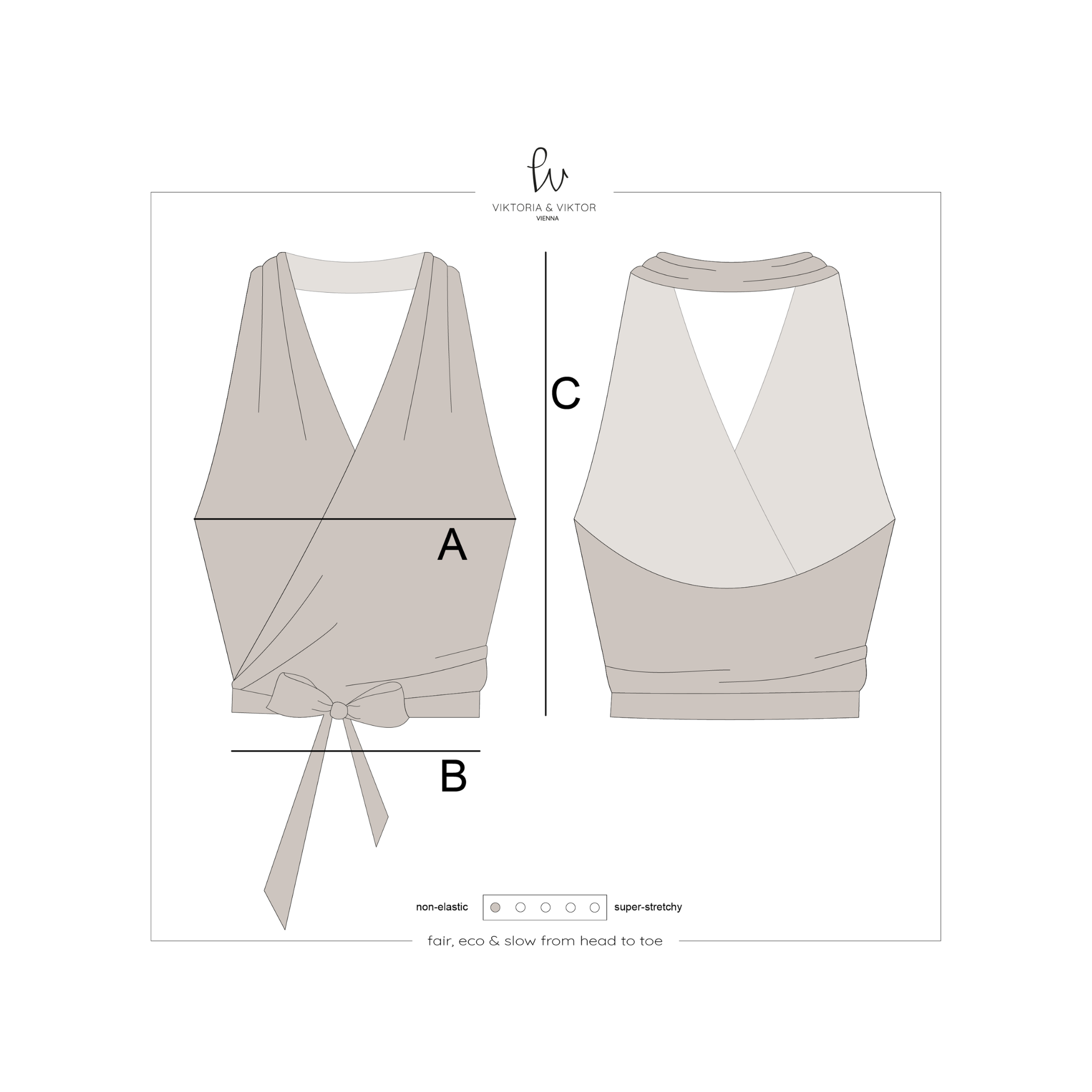 • Overlapping V-neckline at the front, neckholder at the back