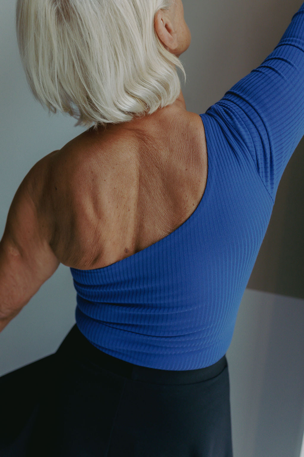Ein Statement-Piece und dennoch unkompliziert: AYLA schmiegt sich dank der weichen Ripp-Struktur angenehm an und überrascht mit dem eleganten One-Shoulder-Schnitt.