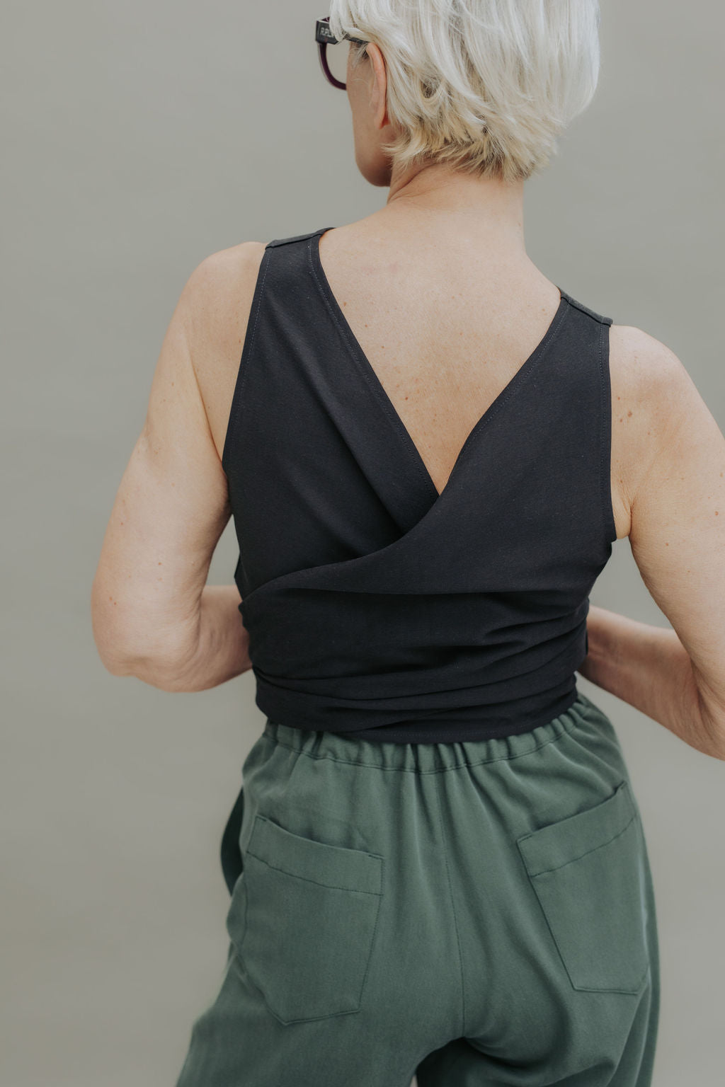 Elea ist nicht nur ein Wickel- sondern auch ein Wendeoberteil. Entscheide du, worauf du gerade Lust hast: ob vorne oder hinten gebunden, gedreht oder nur überlappend.