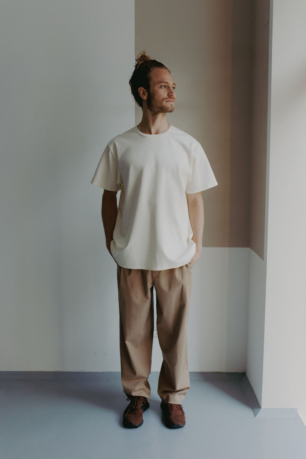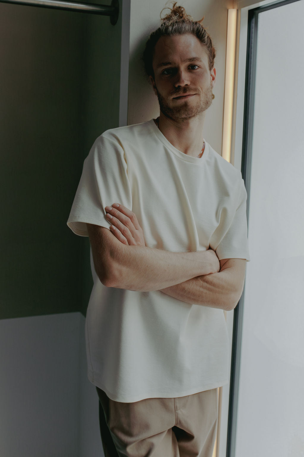 Gefertigt aus besonders schwerem Tencel™ Jersey, das ihm nicht nur einen hochwertigen Fall verleiht, sondern es auch angenehm warm macht. Ein schlichtes Basic, das durch Material und Schnitt heraussticht – zeitlos, vielseitig und besonders.