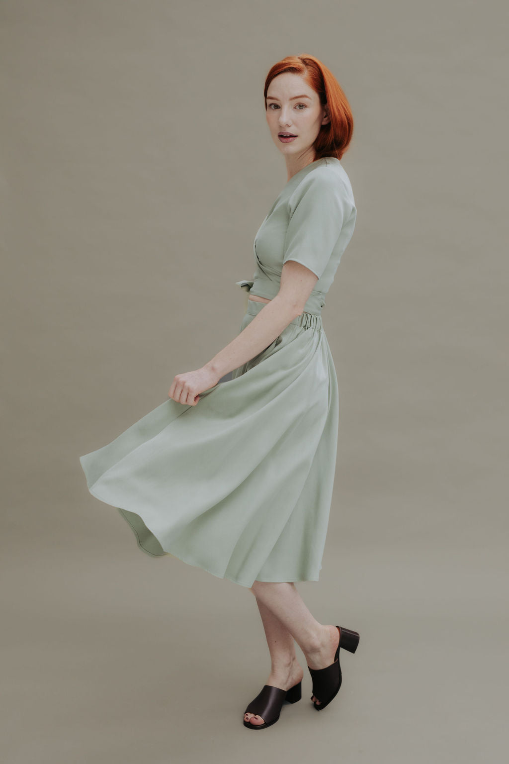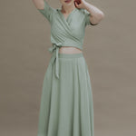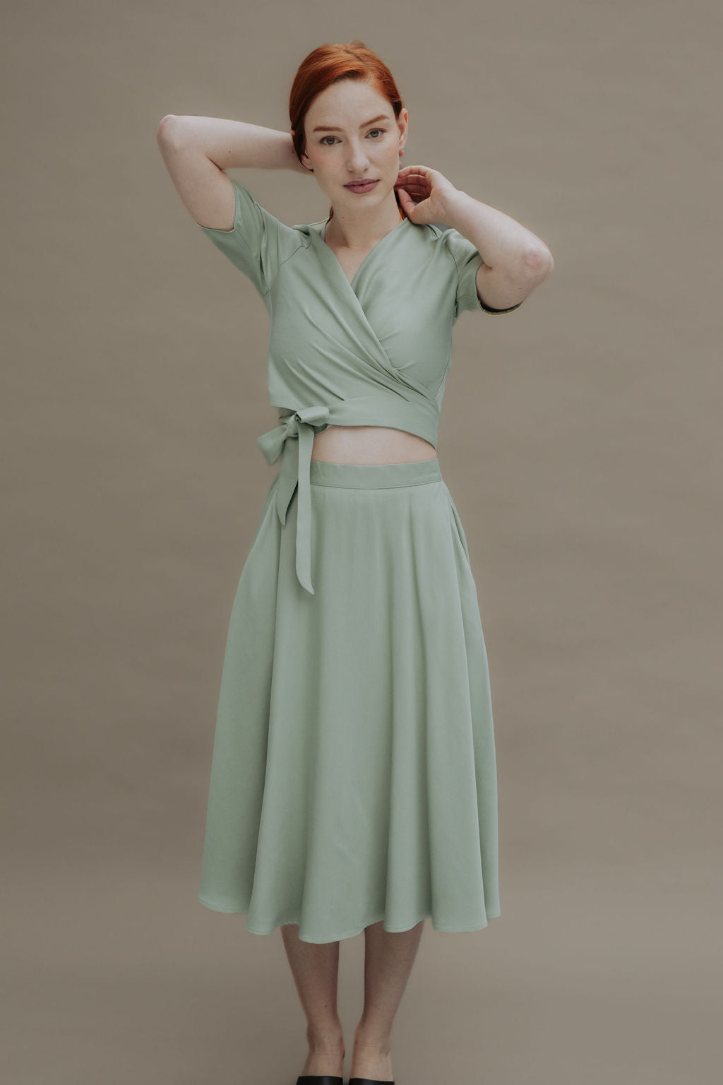 Wickeltop und Rock erzeugen zusammen einen hübschen Kleid-Look - beide Teile kannst Du aber auch nach den Feierlichkeiten unabhängig voneinander tragen und mit ganz anderen Stücken neue Outfits zusammenstellen.